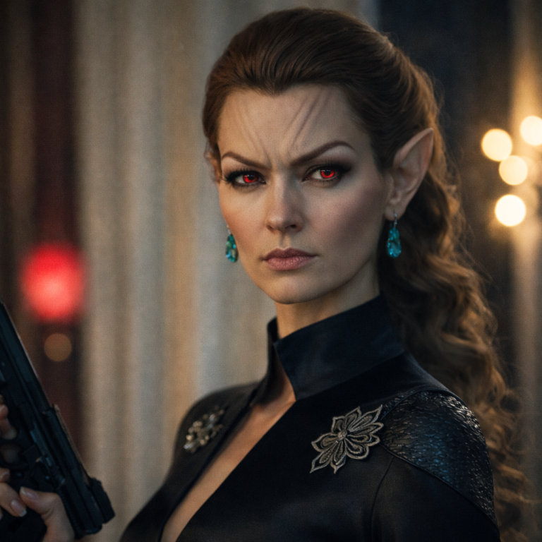 | General Overview | T’Imina comes across quite neutral in her approach to things - one would almost say she could seem rather Vulcan like at times. When she does show emotion, it tends to lie on the cold and stern side of the spectrum. She is extremely xenophobic - a product of being raised in an environment to reject anything which was not pure-Romulan. She can certainly present an ill-will towards other species and especially the same of Romulan half-breeds. There is a great deal of anger within her, which at times can be caught only by those she dares let within arms reach, glimmering behind the facade she puts forward to the external world around her. Deep within, there are sparks of someone who does care for others - enclosed in years of emotional abuse at the hands of her father. Sadly for T’Imina, those sparks have never had the opportunity to ignite into anything more. The only person she had ever truly let see the soft and warm side of her had been her twin brother Rilol. | |